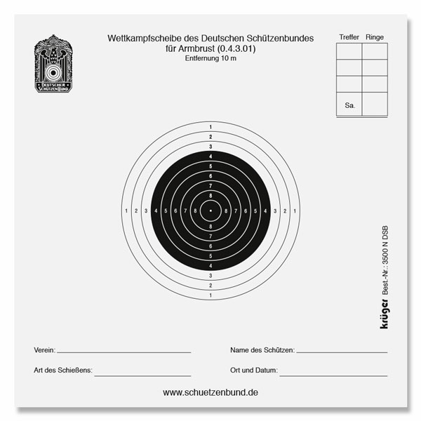 Armbrust 10 m international (10 Ringe) Scheibe mit DSB Signum; Wettkampfschei...