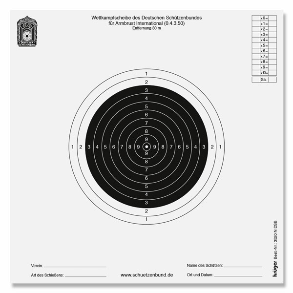 Armbrust 30 m international (10 Ringe) Scheibe mit DSB Signum; Wettkampfschei...
