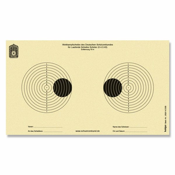 Laufende Scheibe 10 m Schülerscheibe mit DSB Signum; Wettkampfscheibe des Deu...