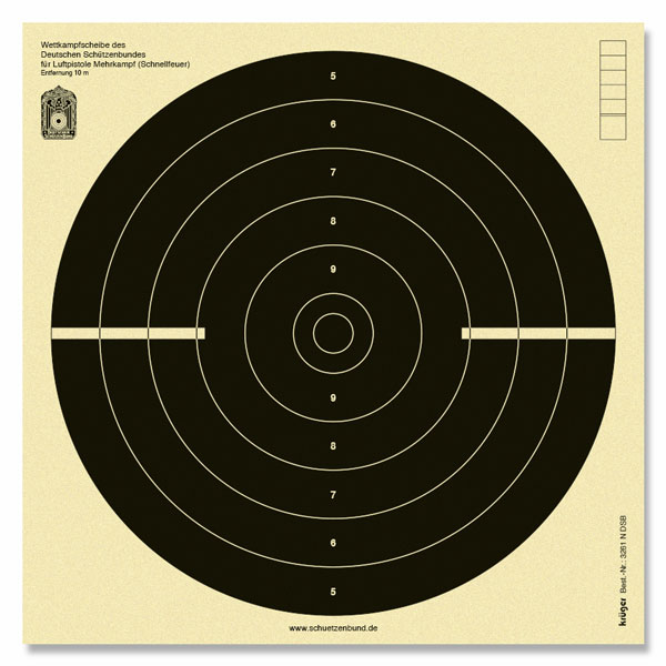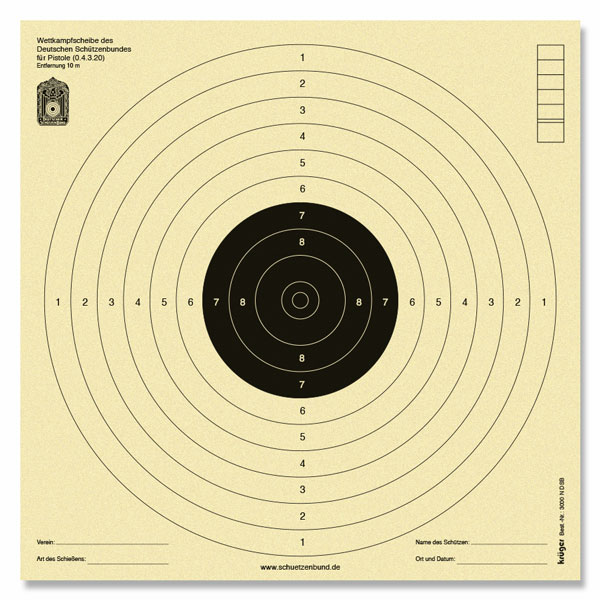 Luftpistole 10m Scheibe mit DSB Signum; Wettkampfscheibe des Deutschen Schütz...